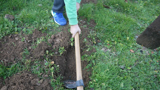 - Plantación de árboles: Los jardineros y jardineras han plantado diferentes árboles frutales como: perales, melocotoneros y cerezos. ¡Menuda faena cavar y plantar! Al acabar también han preparado los carteles con los precios del rastrillo o mercadillo.
